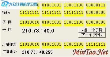 小提示:在给局域网子网分配网络标识地址时,必须确保当前子网的网络标识不能和其他子网的标识地址相同,具体地说就是必须给每一子网分配一个唯一的标识地址;另外在分配网络标识地址时,请不要将网络标识地址的开头数字设成“127”,因为在A类网络地址中,数字为“127”开头的IP地址专门预留给内部回送函数。当然网络标识地址的开头数字也不能设成“255”和“0”,因为“255”开头的IP地址专门用于网络广播的,“0”开头的IP地址专门用来表示本地主机的。 6、换一种方式访问网络 无论是访问网络中的服务器还是工作站时,都需要通过IP地址才能实现访问目的;而我们常见的IP地址是由32位二进制数构成,例如,某网络中的一台服务器IP地址为“11010010010010011000110000000110”,很明显,要是使用这些让人眼花缭乱的0、1数字来访问网络的话,不但输入比较麻烦,而且也不大容易记忆。为了方便记忆和输入,我们人为地将32位“0”、“1”数字分成四组,每8位二进制数分成一组,每组数字用小数点分隔开来,再将四组八位二进制数分别转换成四组十进制数,如此一来前面服务器的IP地址就可以写成“210.73.140.6”,以后我们就可以通过“http://210.73.140.6”或“ftp://210.73.140.6”形式来访问该台服务器了。 除了将32位二进制数的IP地址转换成四组十进制数的IP地址,来访问网络服务器外,我们还可以利用Wildcard工具的IP地址转换功能,将32位二进制数的IP地址直接转换成一组十进制数的IP地址,来实现访问网络的目的。例如,要将“210.73.140.6”IP地址转换成一组十进制数的IP地址时,只要按照如下步骤来操作就可以了: 首先双击Wildcard工具的安装程序,打开该程序的主界面;然后单击该界面中的“十进制IP计算器”按钮,打开如图6所示的设置界面;在该界面的“IP地址”文本框中直接输入需要访问的服务器IP地址,例如输入“210.73.140.6”;