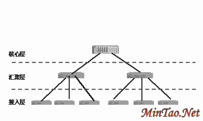 分层式组网(图4)应用于比较复杂的网络结构中,按照功能可划分为:接入层、汇聚层、核心层。