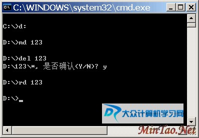 rd 123代表删除D盘根目录的123这个文件夹;