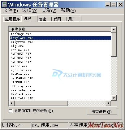 俺将“iexplore.exe”进程给关了;类似这样的奇怪的进程,您不妨逐一将其关闭!