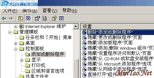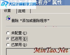 启用这个设置将从“控制面板”删除“添加或删除程序”并从菜单删除“添加或删除程序”项目;