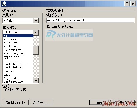 上图中,先在“域名”列表里面找到并选择Eq,之后点击“域代码”按钮;之后如下图一般进行操作!