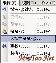 上图,执行“编辑”→“选择性粘贴”;之后,弹出如下图的对话框!