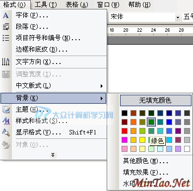提示:重新进行上述操作可更改背景色或填充效果;要删除设置,可执行“格式”→“背景”,然后单击“无填充颜色”;