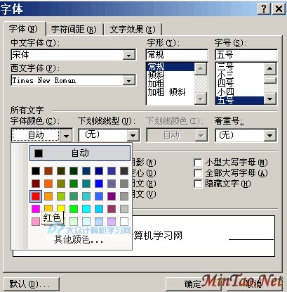 首先,选中文字,之后执行“格式”→“字体”,弹出如下图的对话框!