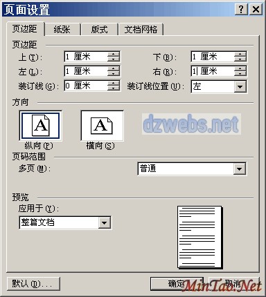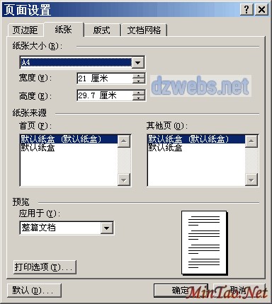①设置纸张的大小