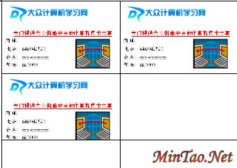 本例中,我们制作的都是同样内容的单个名片汇聚而成的多个名片,如果您想修改其中一张名片的内容,那么,请选择类似上图的某一个名片,双击,进入名片编辑状态,就可以修改了,修改之后,仅对它自身起到作用,不会修改到其他名片的内容!