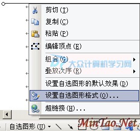 首先,在页面的任意位置,通过自选图形的方法,画出一条水平线来,之后,选中水平线,点击右键,如下图一样,执行右键的“设置自选图形格式”;