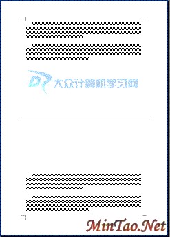 如下图,为效果图,实现了页面上下分栏,内容以中线为基准对齐的排版方式!当然了,如果您想打印文章,水平线影响效果,可将其颜色设置为白色,在打印的时候就不会出现水平基准线了!