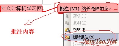 如下图,直接选择批注对象,之后点右键,执行“删除批注”即可;
