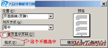 如上图,不能选中“首页显示页码”,之后点击“格式”,之后点击“格式”按钮,弹出如下对话框!