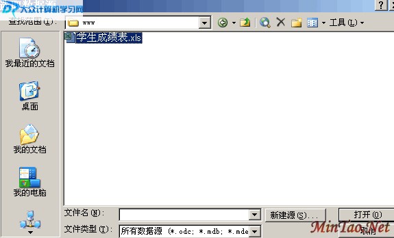上一步点击以后,弹出“选择数据源”对话框,如下图,找到你欲批量打印的EXCEL文件即可!