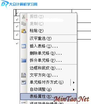 要解决这个问题,首先将光标定位到分出来的第一个单元格,之后点右键并找到“表格属性”,见下图!