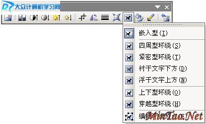 插入未显示的图片,尽管看不到图片效果,但是我们仍然能选择图片的框,选择之后,点击右键,执行”显示图片工具栏”,然后按下图设置其文字环绕方式!