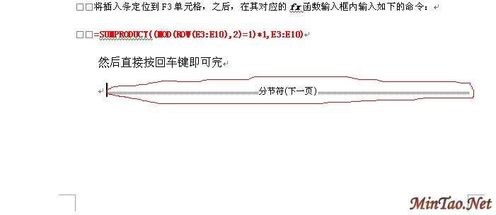 上图中,红线圈住的部分就是分节符的标记,要删除它,只有将插入条定位到它的前面,然后按键盘上的Delete键或Del键即可删除!