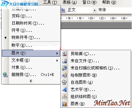 注意,WORD中插入的图片分为两种,一种是WORD自身自带的图片,另外一种是来自WORD之外的图片;以上除了“来自文件”和“来自扫描仪或照相机”两个菜单之外,其他的均来自WORD本身,后者一点就弹出对话框,其中的操作很简单,不再介绍,以下介绍“来自文件”的方法!