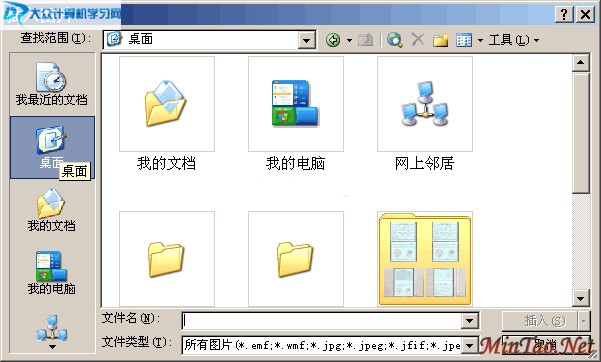 执行:“插入”→“图片”→“来自文件”,弹出如下的插入图片对话框!