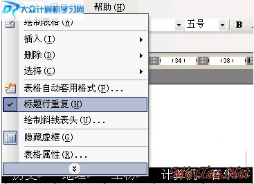 我们可以这样做:选中表格的标题行(一般就是第一行了),执行如下操作: