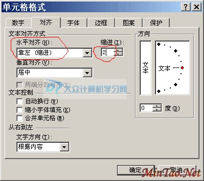 上图中,切换到“对齐”选项卡,然后设置水平对齐为“靠左(缩进)”,最后在其右边设置“缩进”的值,如本例的2,如此,操作完成!
