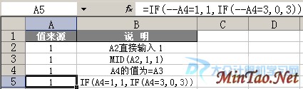 只需要将A5的公式代码变为“=IF(--A4=1,1,IF(--A4=3,0,3))”即可!
