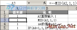 保持A5单元格代码不变,而改变A3单元格的代码为“=--MID(A2,1,1)”,就这样,问题全部得到解决!