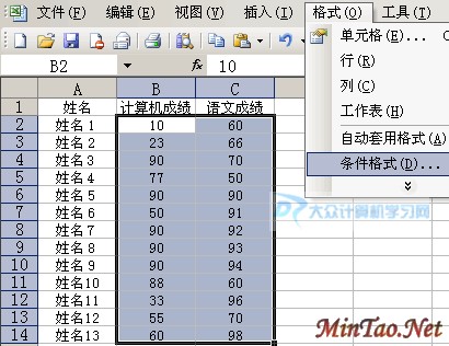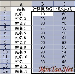 如下图,在BC列中,有成绩数据。
