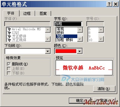 上图中,我们选择红色的颜色,并设置字形为加粗,点击“确定”按钮,返回如下图的操作对话框!