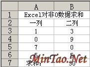 上图中,我们要对AB两列的非0数字进行求和,将结果放到B7单元格;
