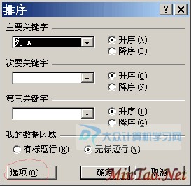 上图中,首先确保选择主要关键为“列 A”,之后,点击对话框右下角的“选项”按钮!