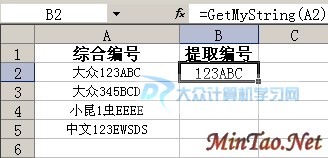 本例中,我们所要自己定义的函数名称为GetMyString,这是Excel中未曾有过的函数,因此称为自定义函数,为使该函数能应用到Excel中,首先,我们应该做的就是在Excel中添加该函数到指定的模块方能使用!