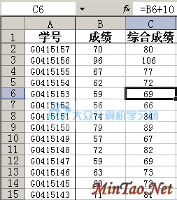 如下图!C列为使用公式的列,其值为B列的值加上10所得的结果!