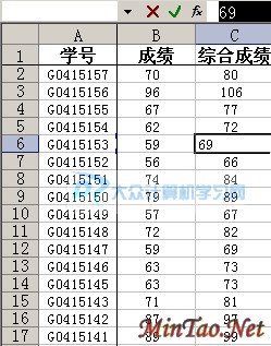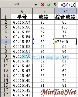 由于对于的C6的值应该对于B6+10,而B6的值为59,因此,按下F9之后,显示的结果为69;这是临时显示公式值的方法!