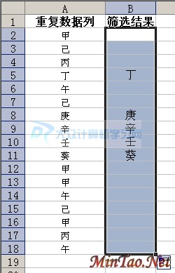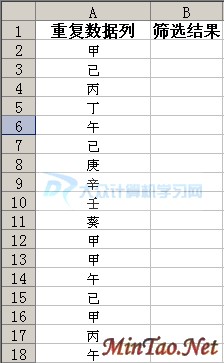 我们要实现的目标就是,将A列中不重复的数据,放到B列中!