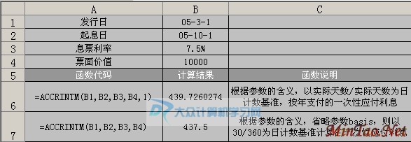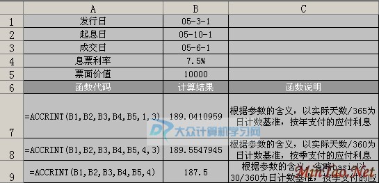 如果利率为 0 或票面价值为 0,函数 ACCRINT 返回错误值#NUM!。