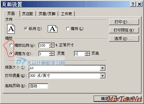 执行“文件”→“页面设置”,弹出如下图的对话框!