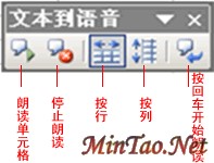 共有五个按钮,从左→右,分别是“朗读单元格”、“停止朗读”、“按行”、“按列”、“按回车键开始朗读”;