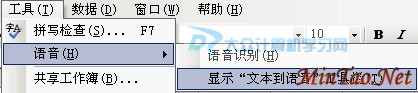 “工具”→“语音”→“显示'文本到语音'工具栏”,这个时候,会弹出如下图的工具栏!