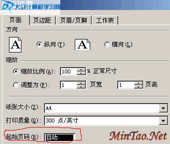 切换到“页面”选项卡,在其下方找到“起始页面”,在其右方输入打印的第一页的页码即可,如果不输入,那么,页码必然从1开始;一旦输入一个初始值,打印页面就从该值开始!