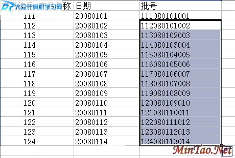 如下图,有三个字段,分别为产品编号,日期和批号,产品编号的位数不定,日期位数固定,为8位,需要的结果就是,将产品编号加日期后六位,外加批号自动编号如001,002,003等编号,结合为一个字符串,显示到批号列中