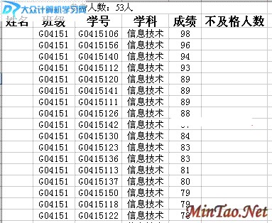 假设存在如下图的学生成绩表,现在,让我们一起来使用COUNTIF函数进行统计,下面统计的是不及格的人数!