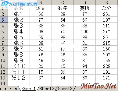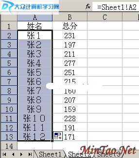 以后,只要修改了Sheet1中的学生成绩和姓名,那么Sheet2中的数据就会自动修改!