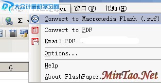 要使用Macromedia Flash Paper 的功能,你得先安装它,可以到网上下载一个进行安装: