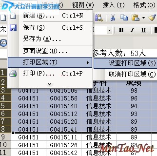 之后,执行操作:“文件”→“打印区域”→“设置打印区域”;操作执行后,所选择的数据区域会自动带有明显的线框,而不弹出任何对话框!