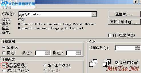 上图中,选择好打印机等设置之后,记住要在“打印内容”那里选择“选定区域”,这是至关重要的,马虎不得!