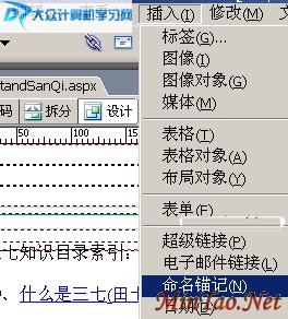 不同的软件,针对锚点的说法都不一致,在FrontPage,称为书签;在Dreamweaver里面,称为锚点或锚记;而超级连接的说法却是一致的!