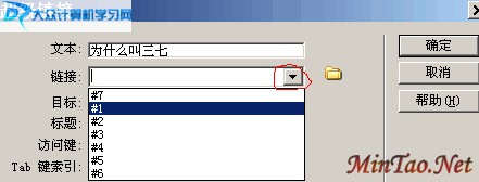 上图中,选择链接右边的下拉组合框,从中选择一个锚点的名称即可!