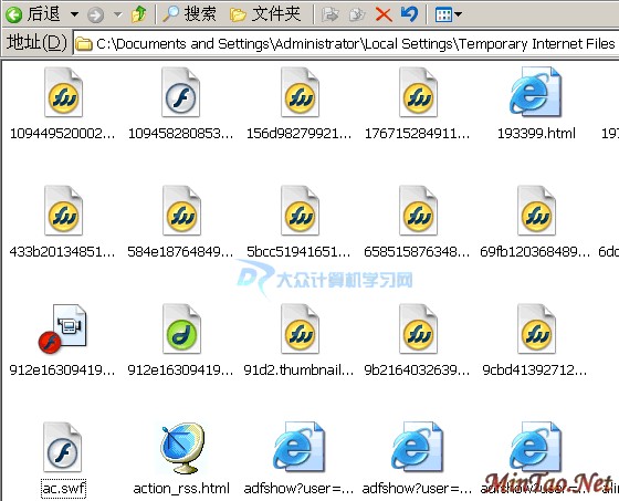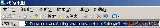 之后,如下图一般,在窗口的地址栏中输入C:\Documents and Settings\Administrator\Local Settings\Temporary Internet Files这个地址并按回车键,如下图!