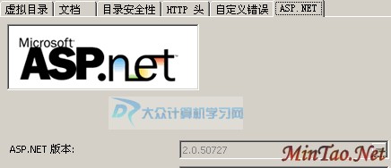 最后,切换到“ASP.NET”选项卡,选择一个适合于网站的ASP.NET版本,常见的版本为1.0、2.0、3.5版等!