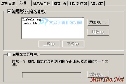 之后,切换到“文档”选项卡,如果列表中没有您网站首页的名称,尽请通过“添加“按钮进行添加并切换首页的位置!