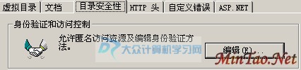 再次,切换到“目录安全性”选项卡,点击“编辑”按钮!